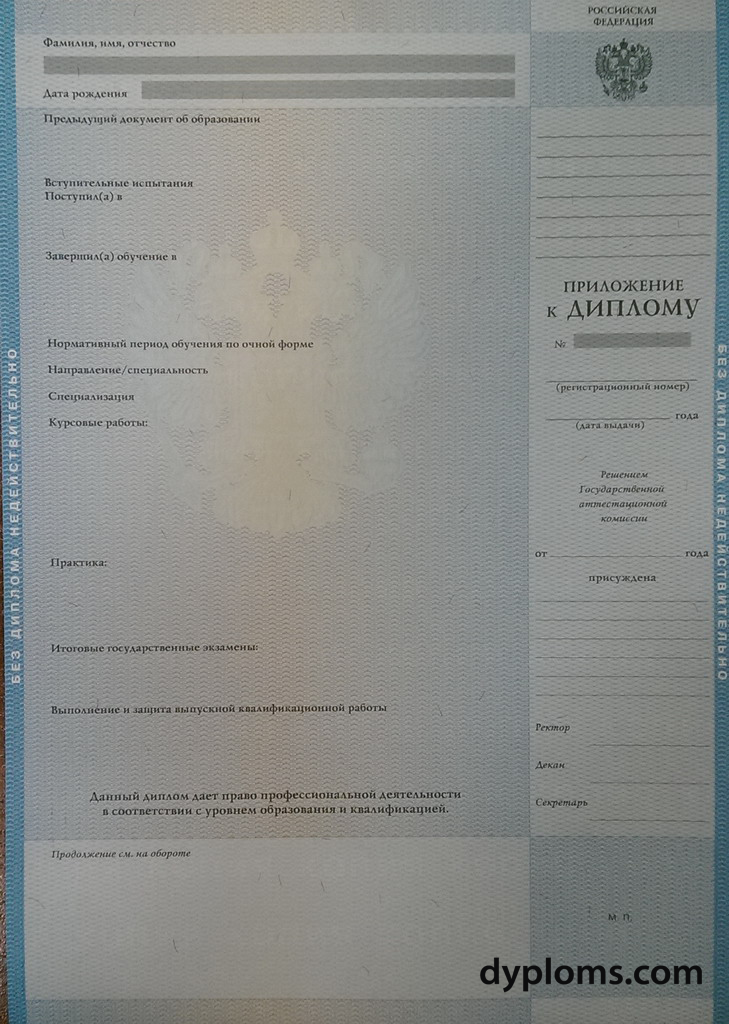 - Оформление в соответствии с нормативами Министерства образования РФ, включая подлинные мокрые печати выбранного учебного заведения.